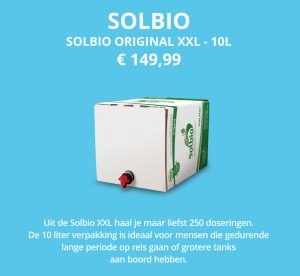 Of je nu voor lange tijd op reis gaat of er een weekend op uit trekt, er is altijd een krachtige oplossing met de biologische en multifunctionele toiletvloeistof. Voor lange kampeervakanties in de natuur is er een grote verpakking van 10 liter, maar voor wie kortere reizen maakt is er nu de 800 ml verpakking voor 20 doseringen. Daarnaast is er ook een 1,6 liter Solbio Original verkrijgbaar en een geurvariant Marine (enkel in 1,6 liter).